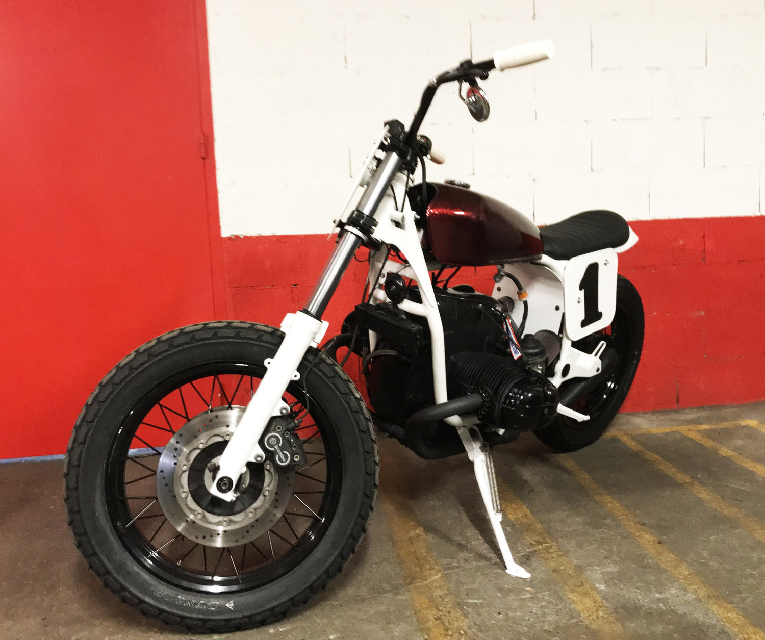 We fully transformed this ‘92 BMW R100R for an Italian customer who seemed not to be afraid to retrieve a motorcycle inspired by the craziness of the seventies. Hence the candy red applied on the tank.