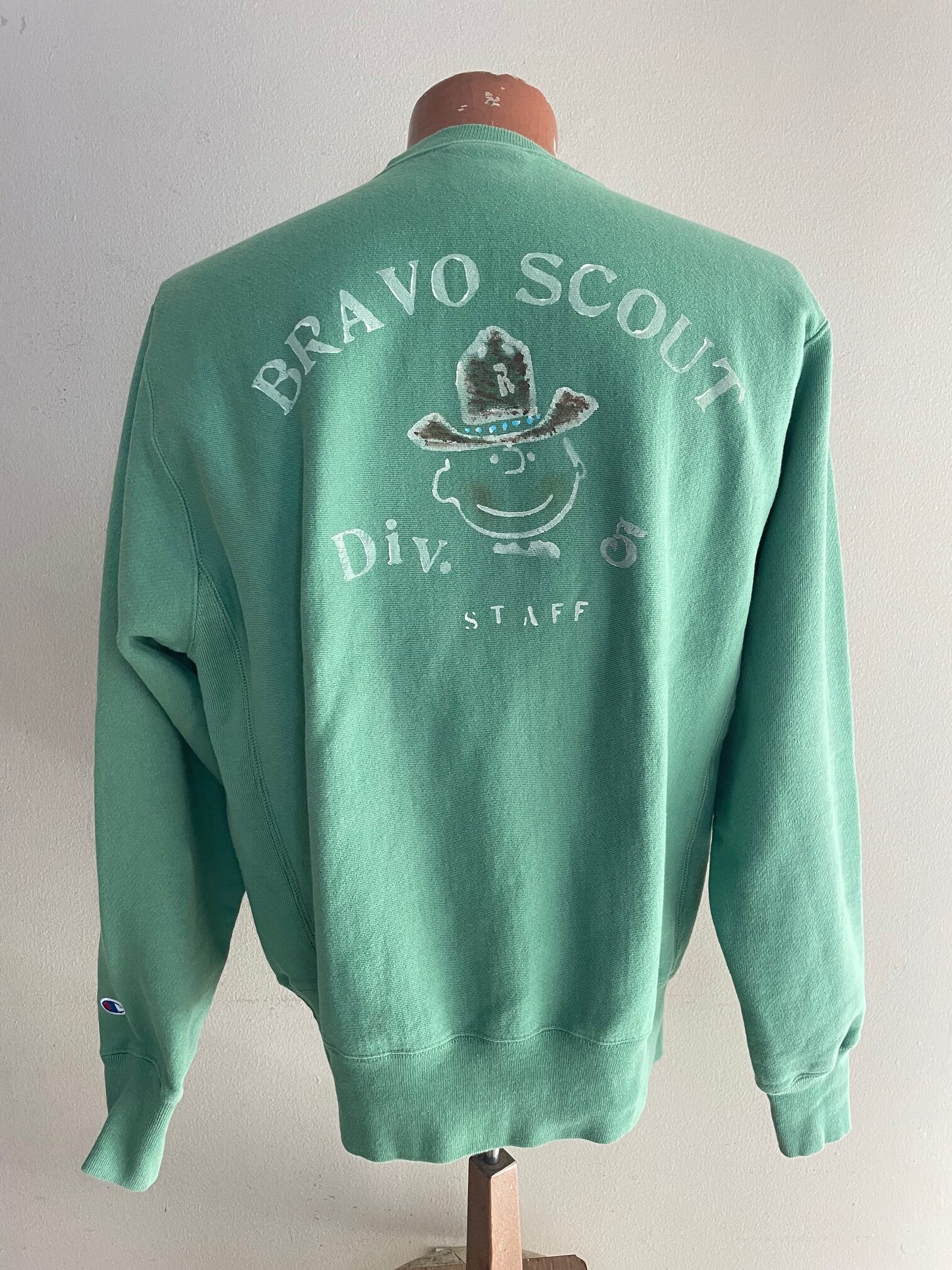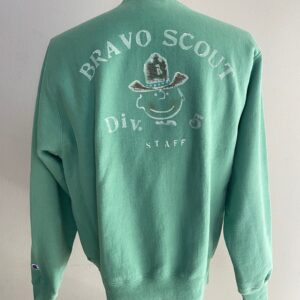 Here comes the “US Bravo Scout” crewneck, based on a vintage green Champion USA sweatshirt and hand painted by US Rio Bravo. It comes with the hand made collectable pin “made in California”.