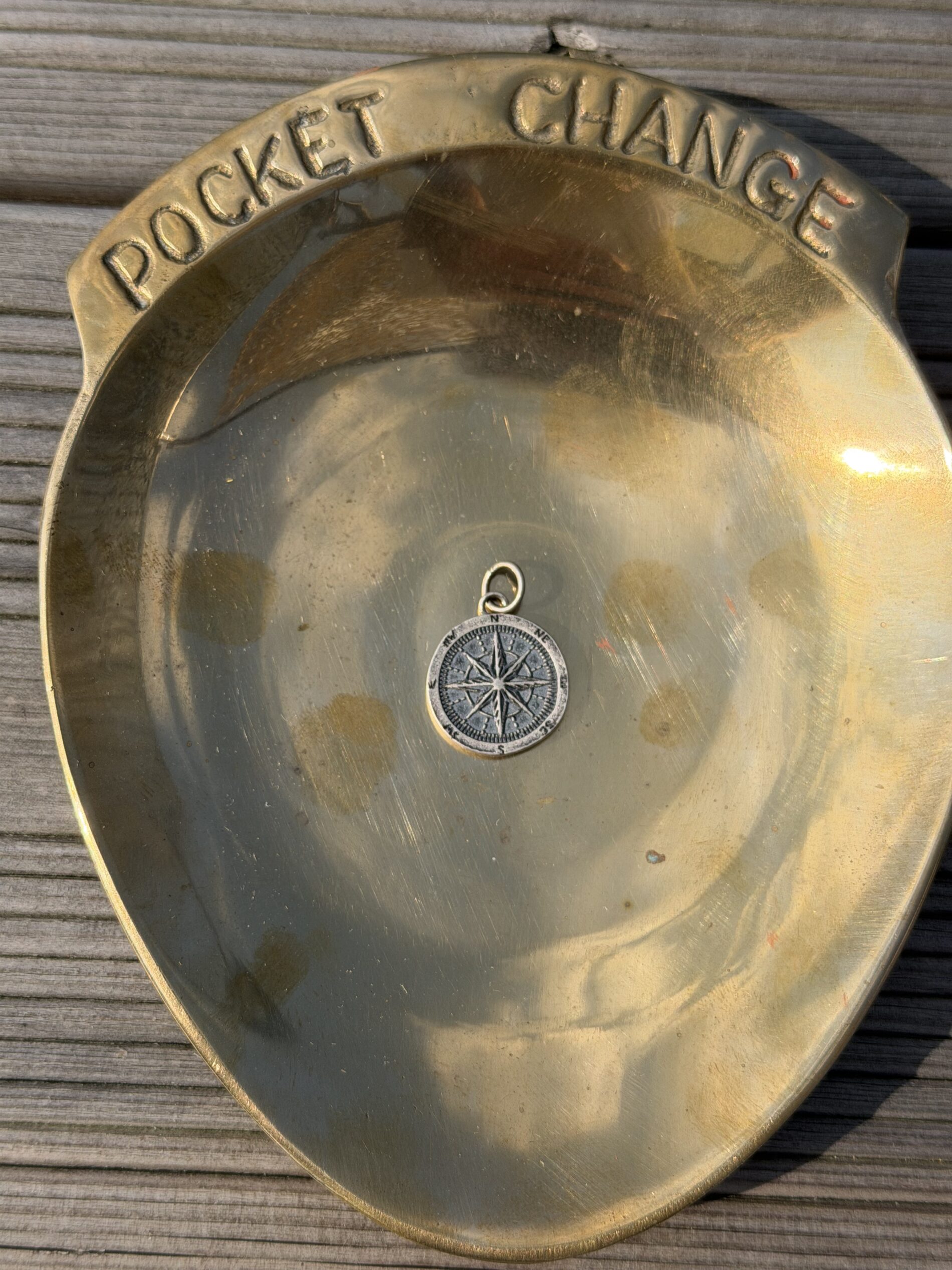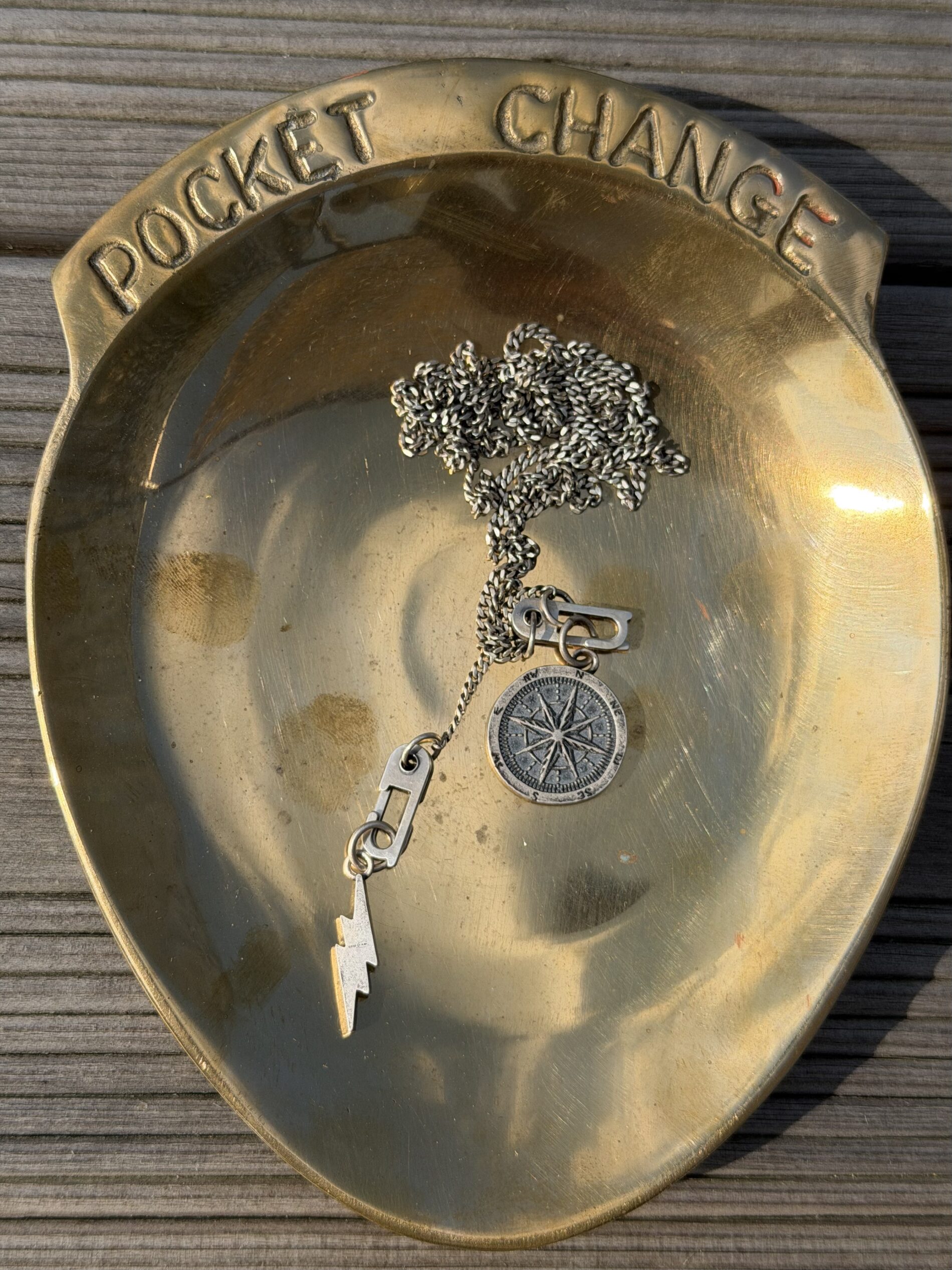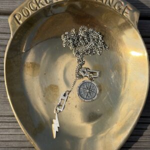 Sister hook chain with 2 charms : Silver compass with no enemal / silver thunderbolt